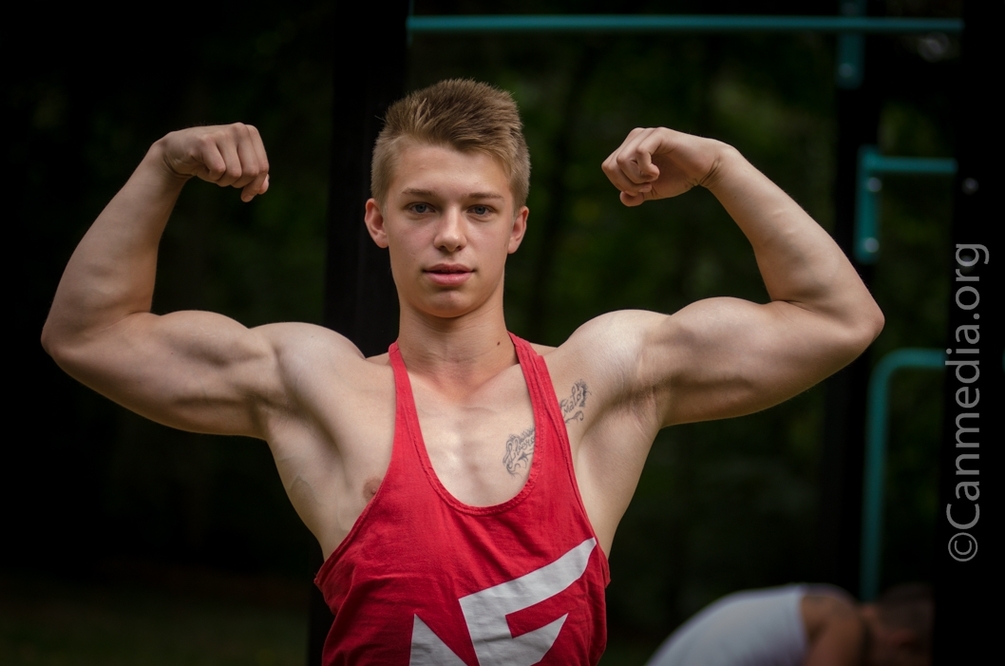 Tim is working out and flexing his muscles. The video has no sound. Playing time: 13:43 minutes.